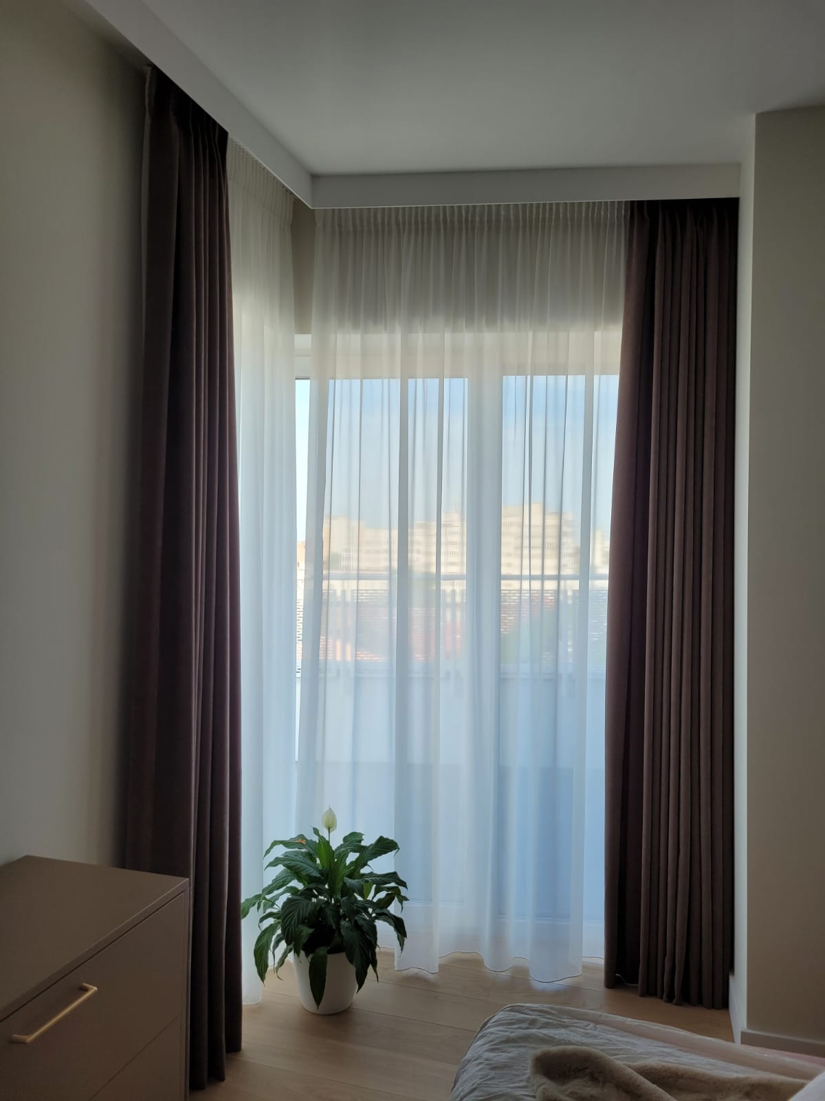 Lucrăm doar cu materiale testate, ușoare, dar rezistente, care filtrează lumina exact cât trebuie. Ținem cont de orientarea ferestrelor, de înălțimea camerei, de nuanțele pereților și de stilul tău de viață. Îți oferim consultanță reală – nu doar mostre și catalog. Îți recomandăm combinațiile potrivite, accesoriile discrete și sistemele de prindere care pun în valoare materialul, nu îl ascund.