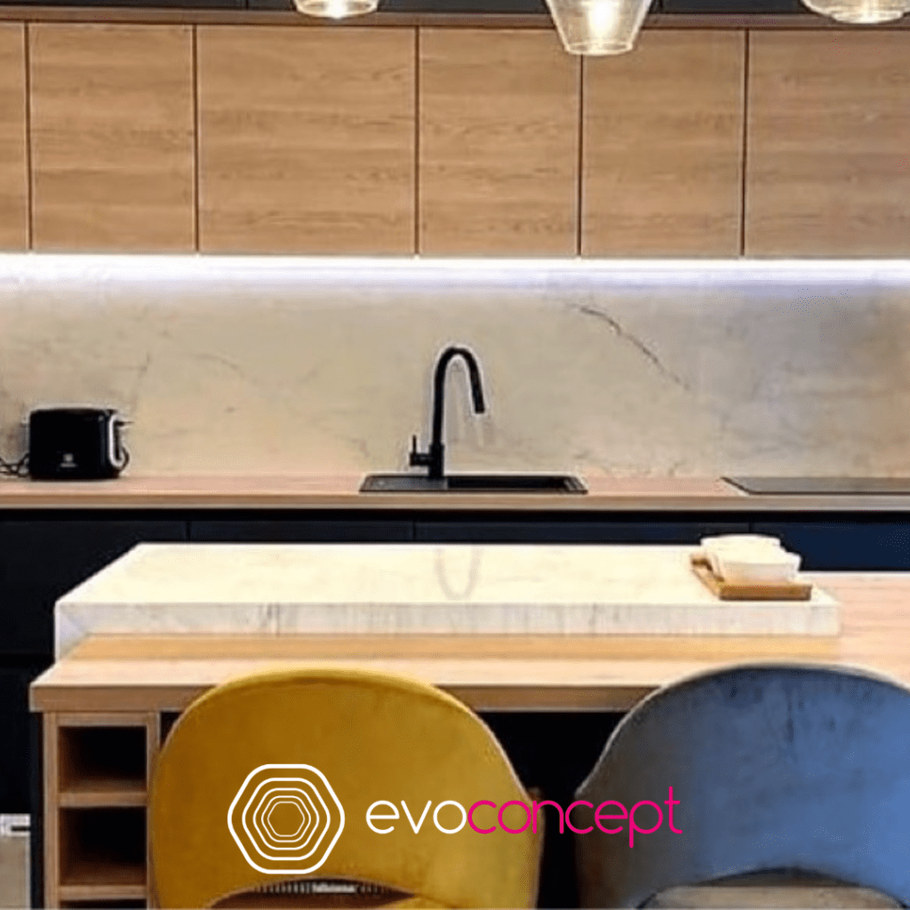 Provocarea a fost să găsim un material care să aducă căldură, naturalețe și un accent vizual discret, fără a încărca spațiul.